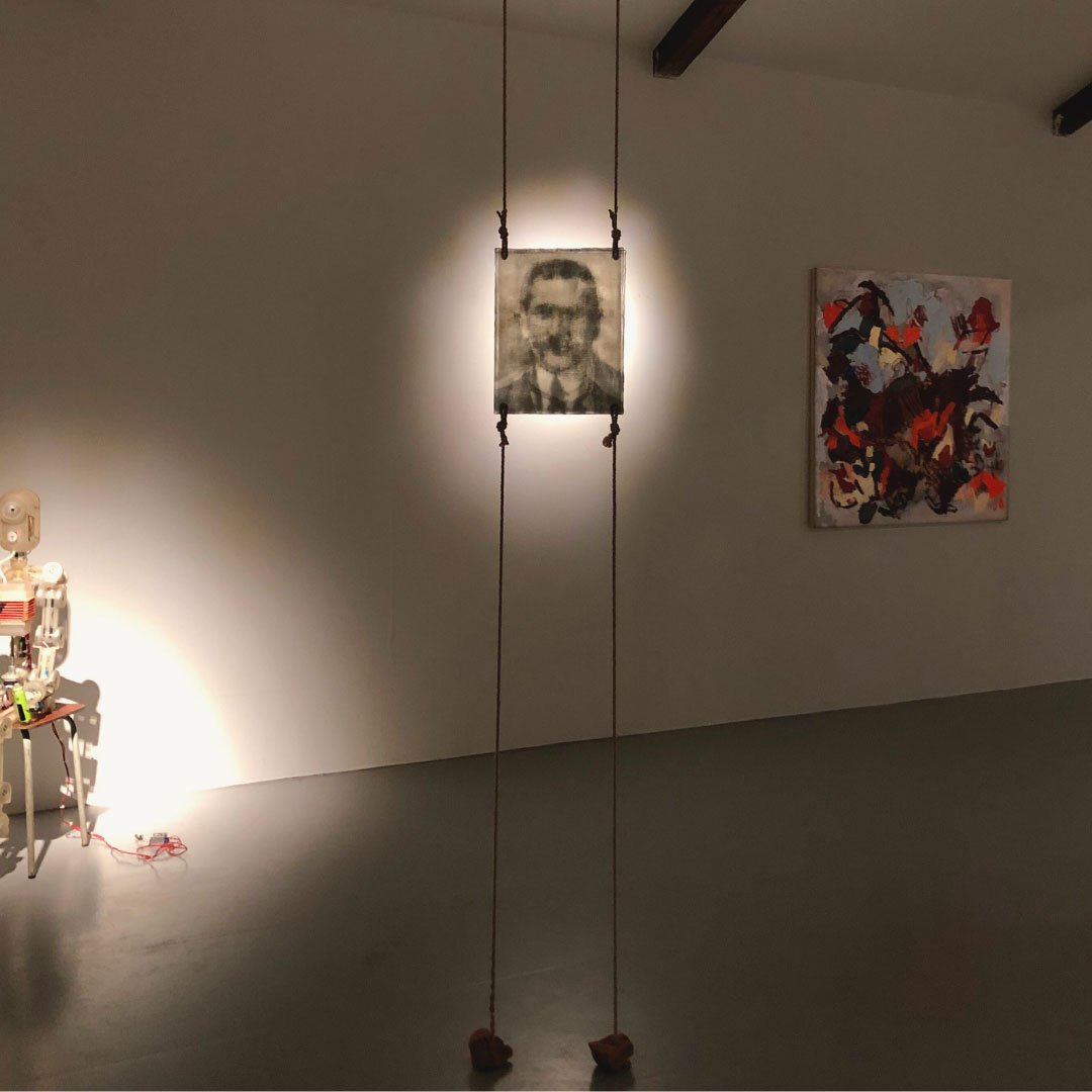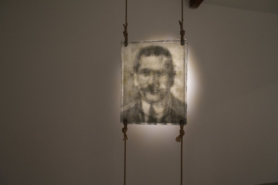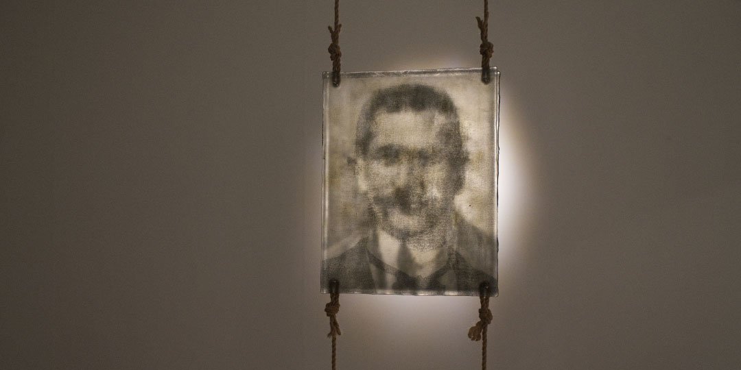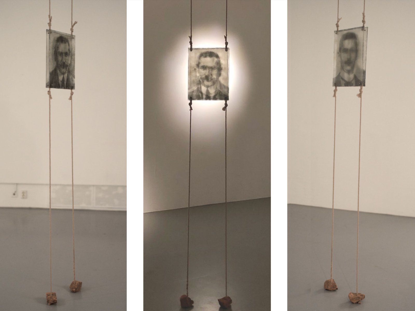 photography on glass, rope, bricks – 45x400cm – 2025 – himmel, galleri seilduken, oslo, norway